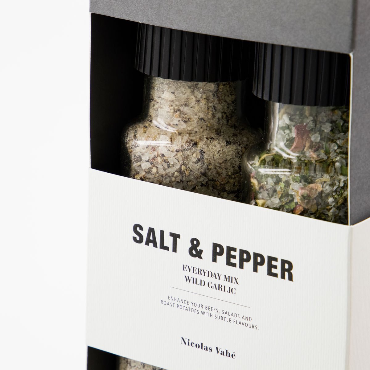 Šis “Nicolas Vahé” prieskonių rinkinys, Everyday mix & Wild garlic, sudaro du klasikiniai druskos mišiniai, skirti puikiam maisto ruošimui. Druskos ir pipirų mišinys “The Everyday Mix” yra gardžių patiekalų pagrindas. Iš esmės tai yra tas, kurio pasigendame ant stalo. Druskos ir laukinių česnakų, mišinys pasižymi lengvu ir subtiliu česnakų skoniu, kuris pagardina jūsų kepsnius, keptas bulves ir padažus. Padovanokite jį šeimininkei, draugui ar kaimynui. Visi mėgsta kulinarines staigmenas.