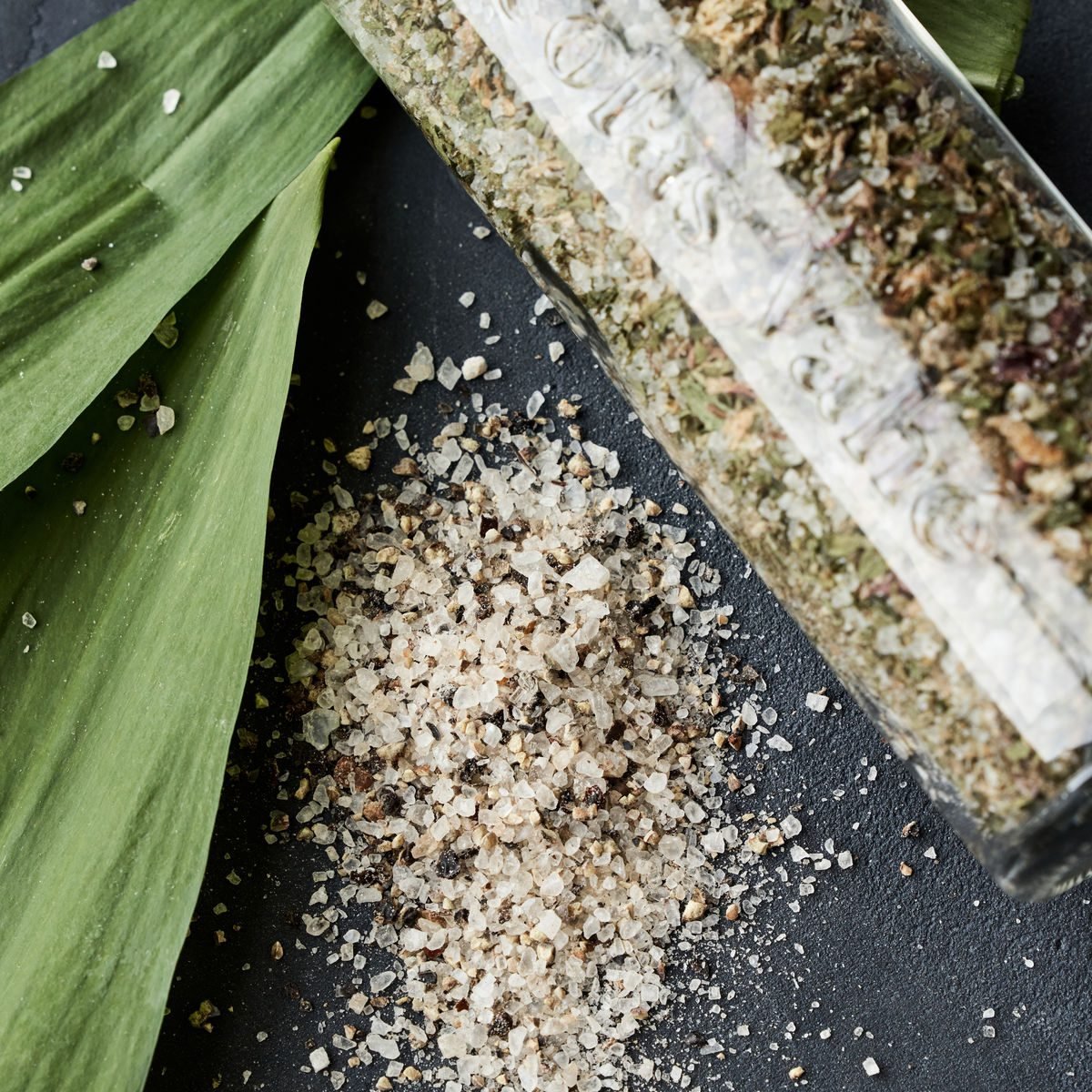 Sudėtis: druska 90 %, pipirai 10 %. Jūros druska 87 %, džiovinti laiškiniai česnakai 5 %, džiovinti laukiniai česnakai 4 %, džiovinti česnakai 3 %, petražolės.